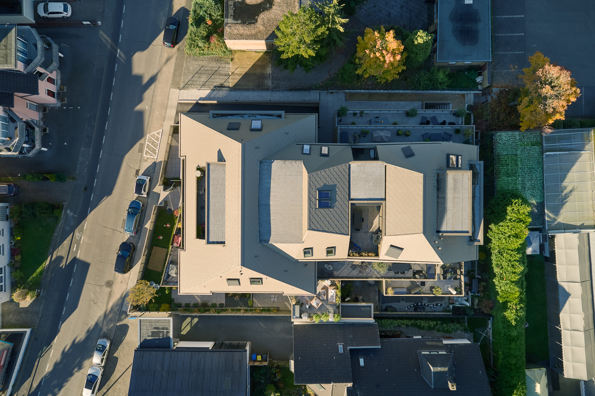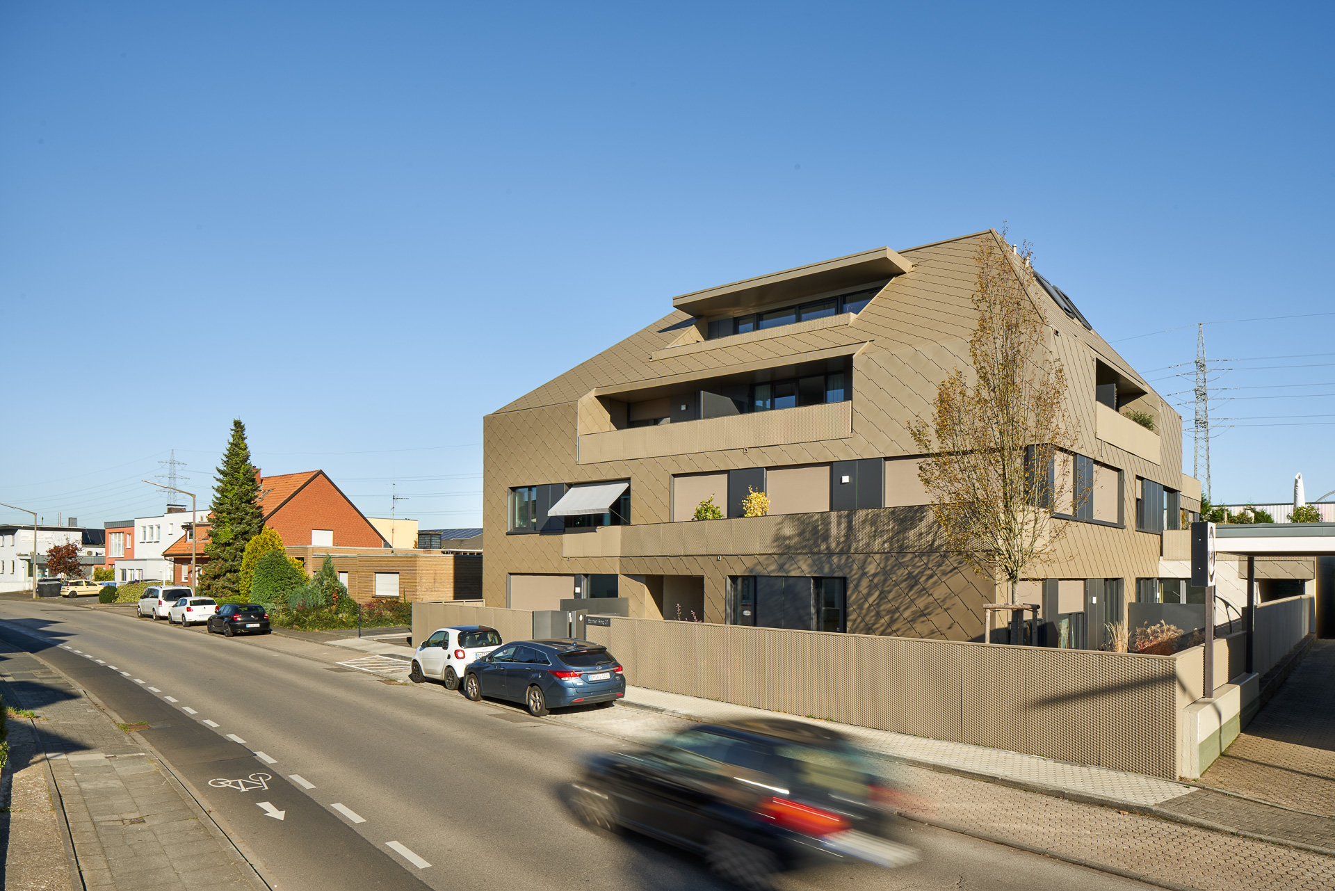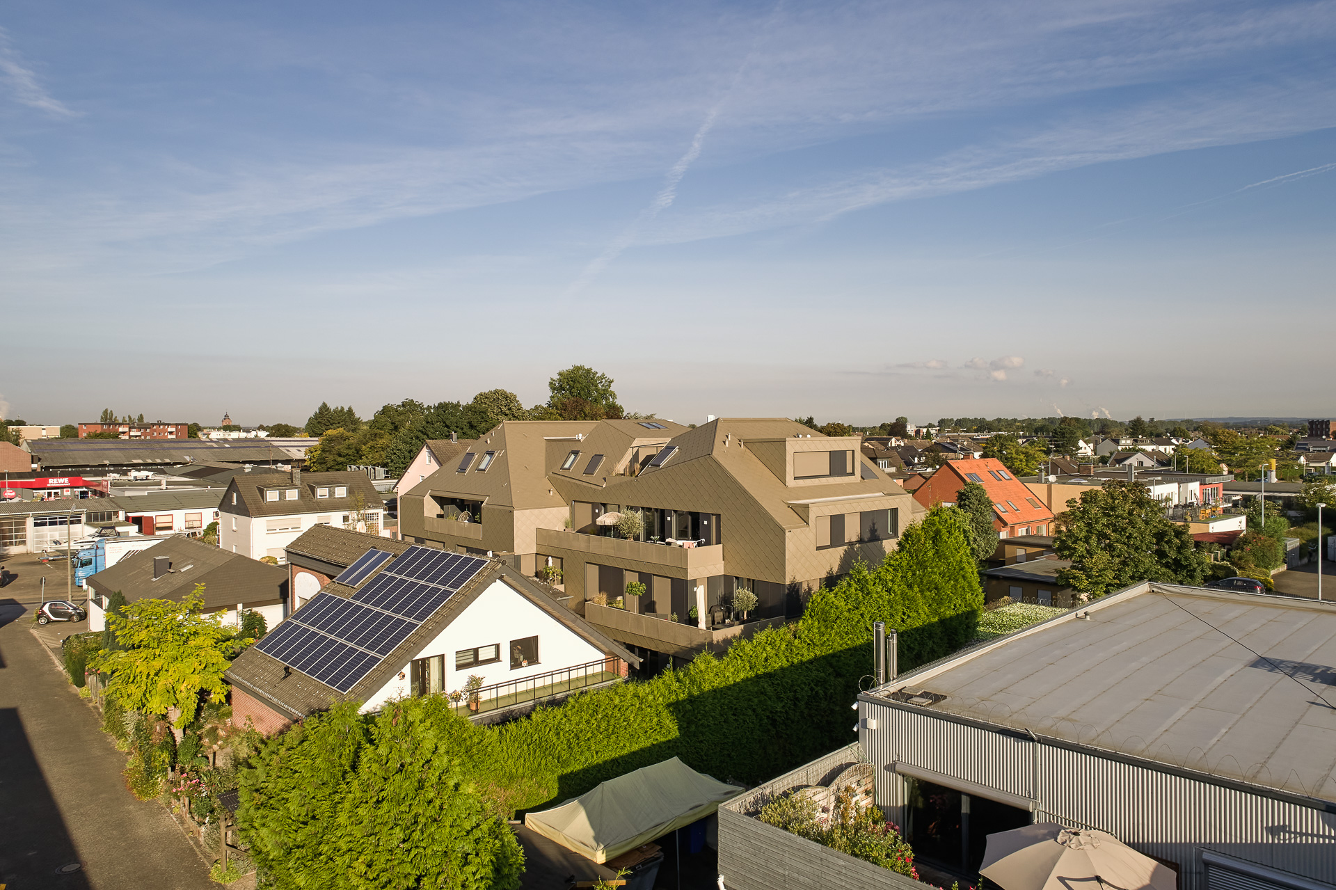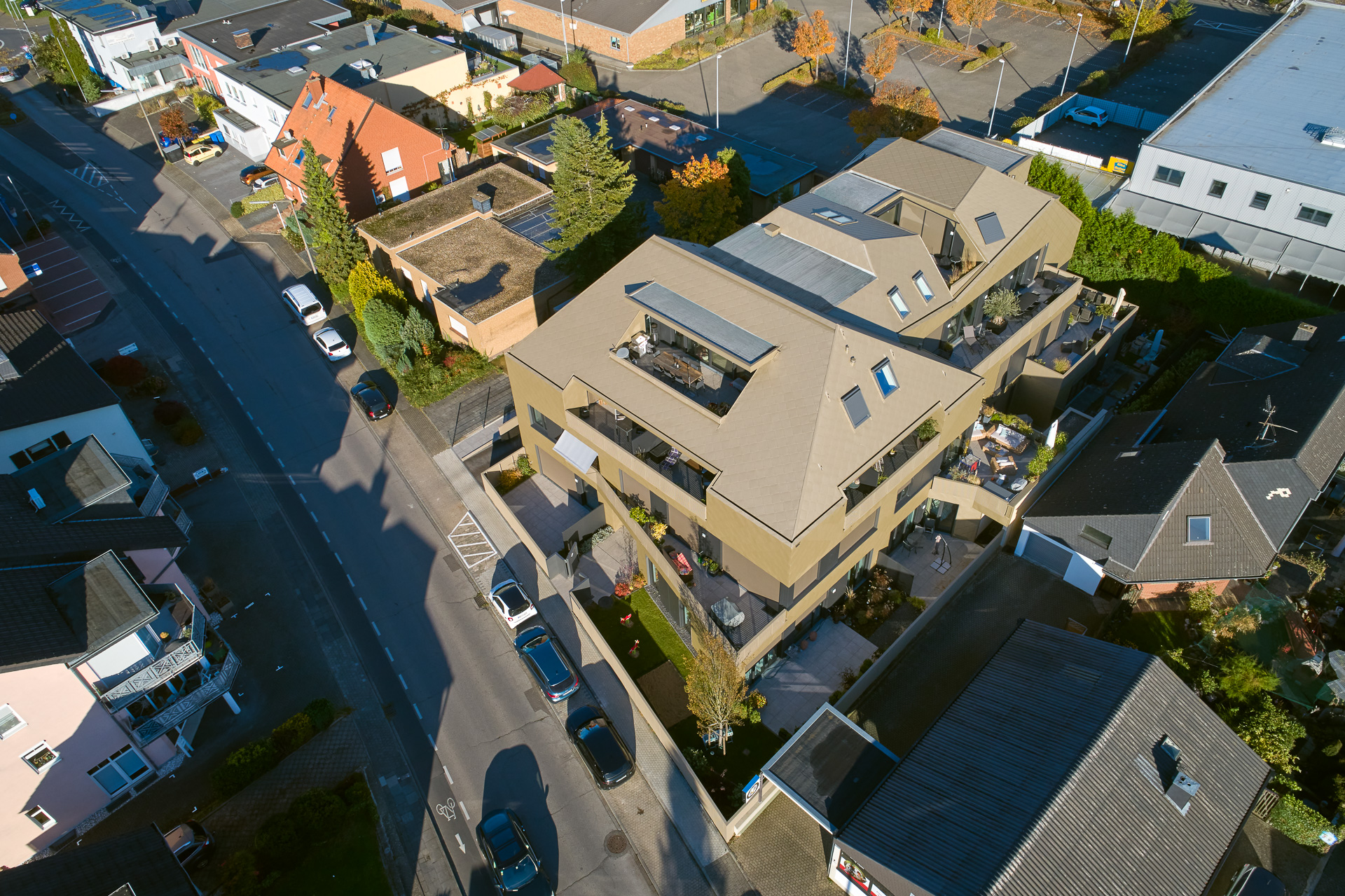 Unser Baukörper behauptet sich elegant und zugleich selbstbewusst als Vorbote des städtebaulichen Wandels. Nah am Stadtzentrum Lechenichs, trägt er mit seinen 17 Wohneinheiten auf zuvor minder genutztem – aber bereits versiegeltem Grundstück – mit geringem Flächenverbrauch zur städtebaulichen Nachverdichtung bei. Der Wohnraumbedarf sowie stark ansteigende Immobilienpreise führen hier in durchmischter Ortsrandlage Lechenichs dazu, dass Wohnnutzung