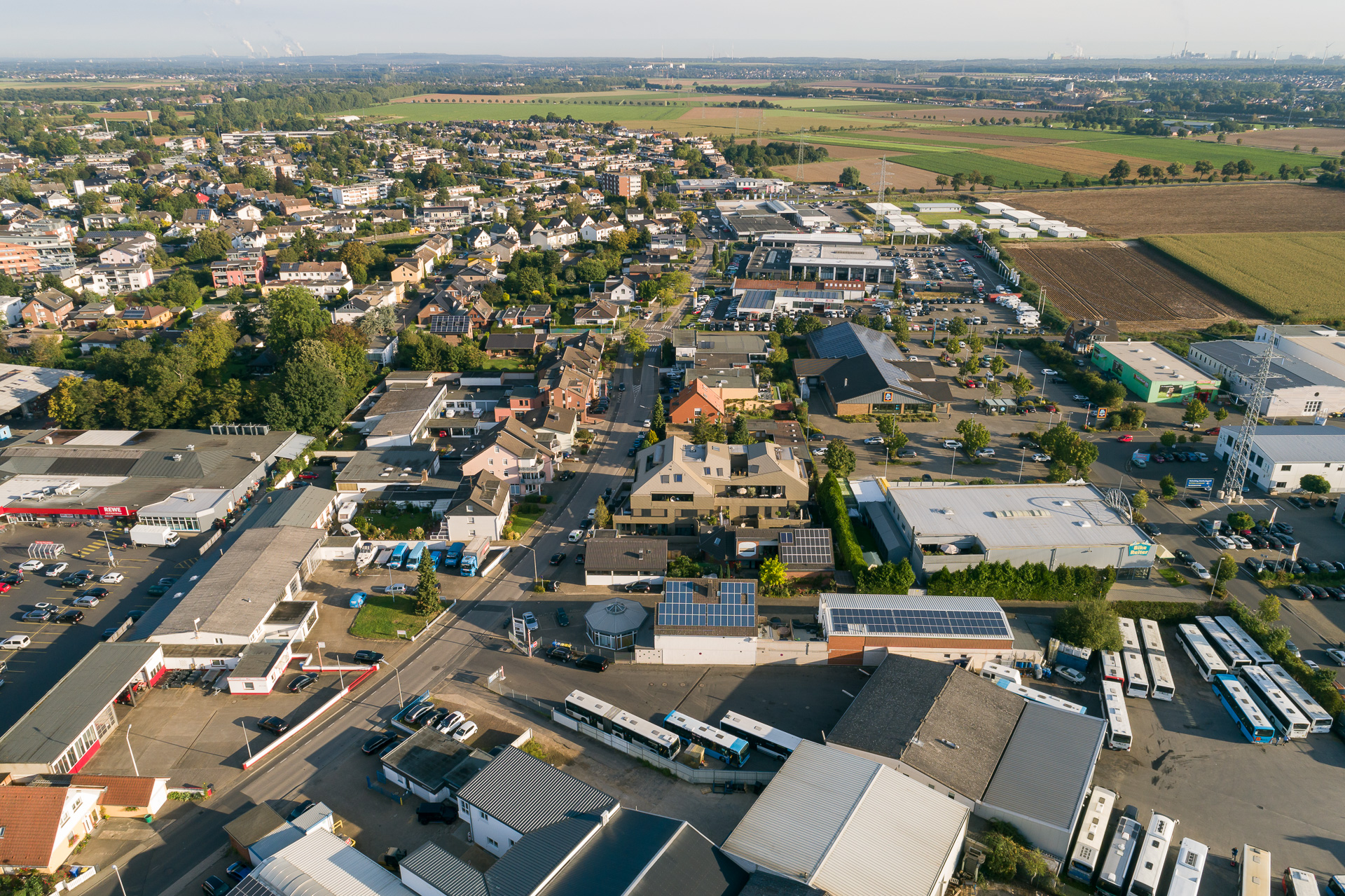 aus dem Ortskern hinaus bereits in die gewerblich genutzten Flächen hineindrängt.