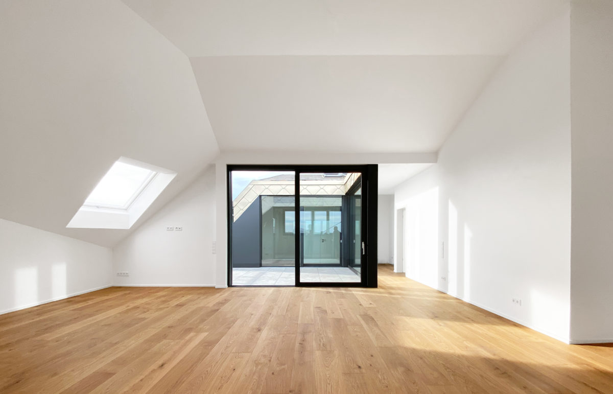 Bei der insgesamt hohen Ausstattungsqualität, stechen die raumhohen Fensteranlagen und ihre stufenlosen Zugangsmöglichkeiten zu den sehr großen Terrassen hervor.
