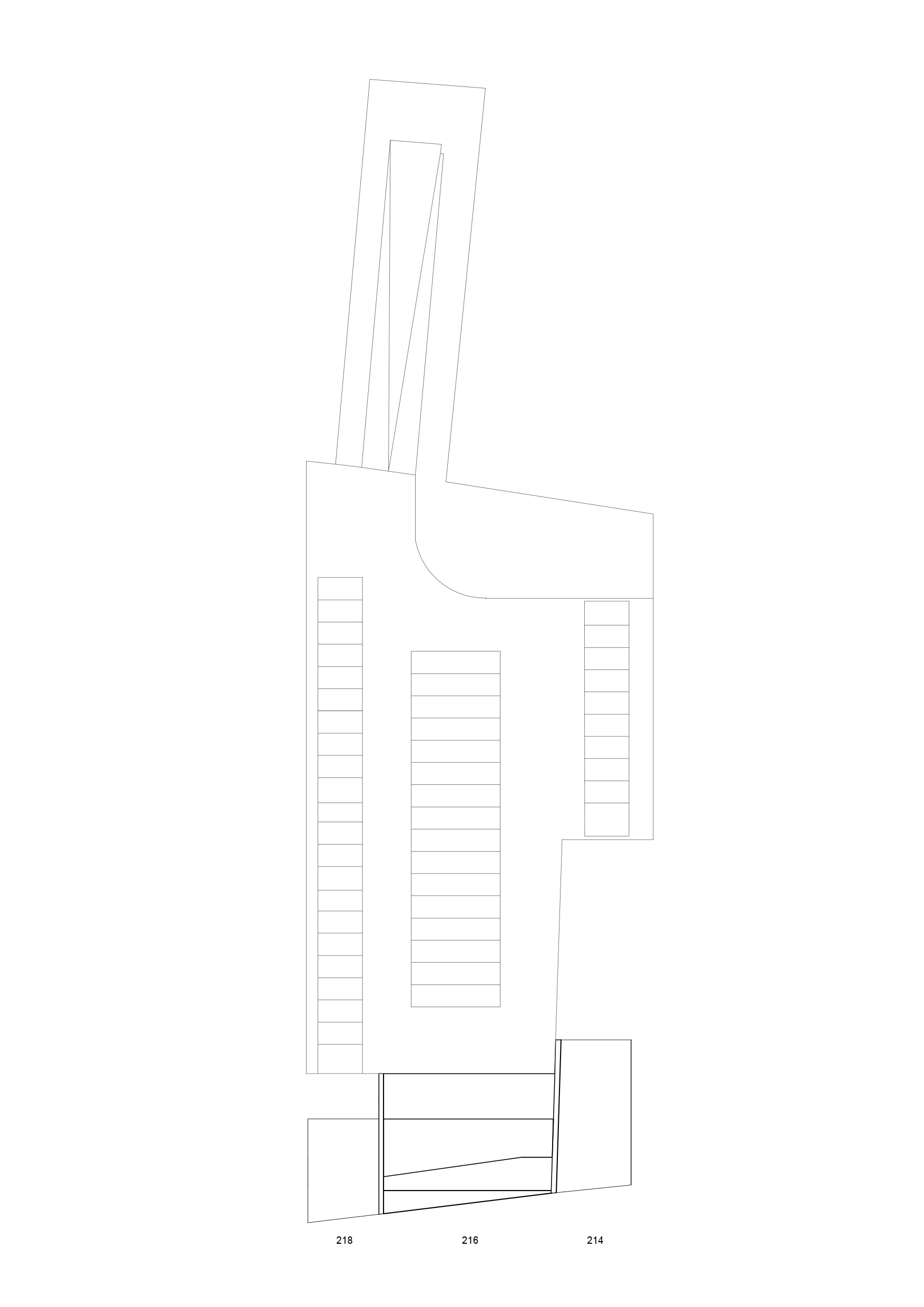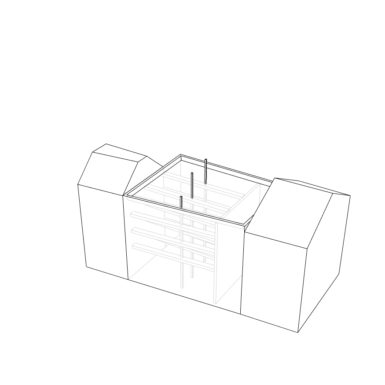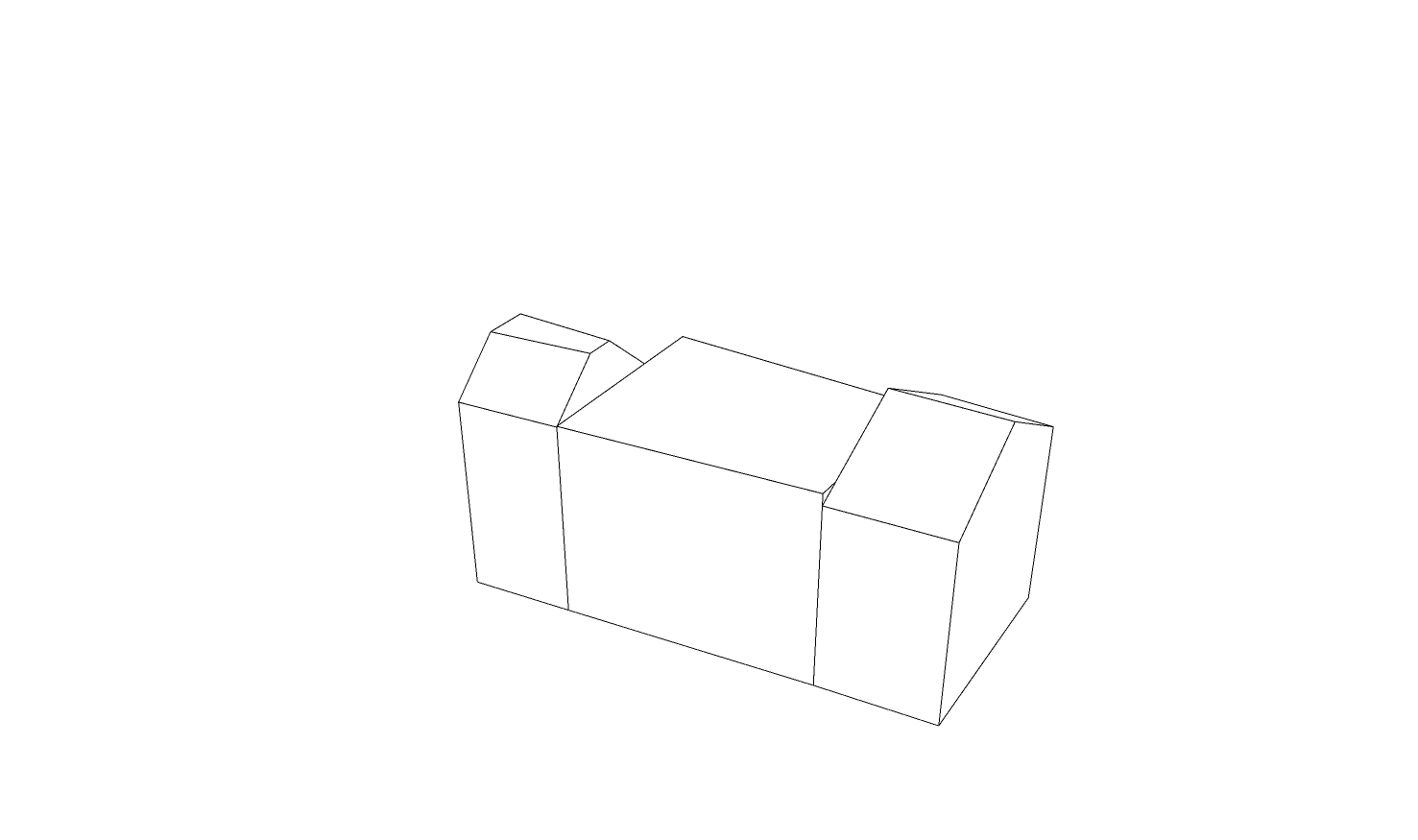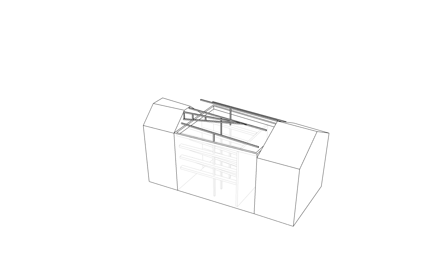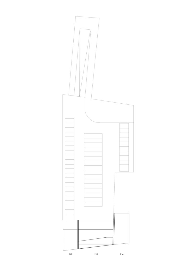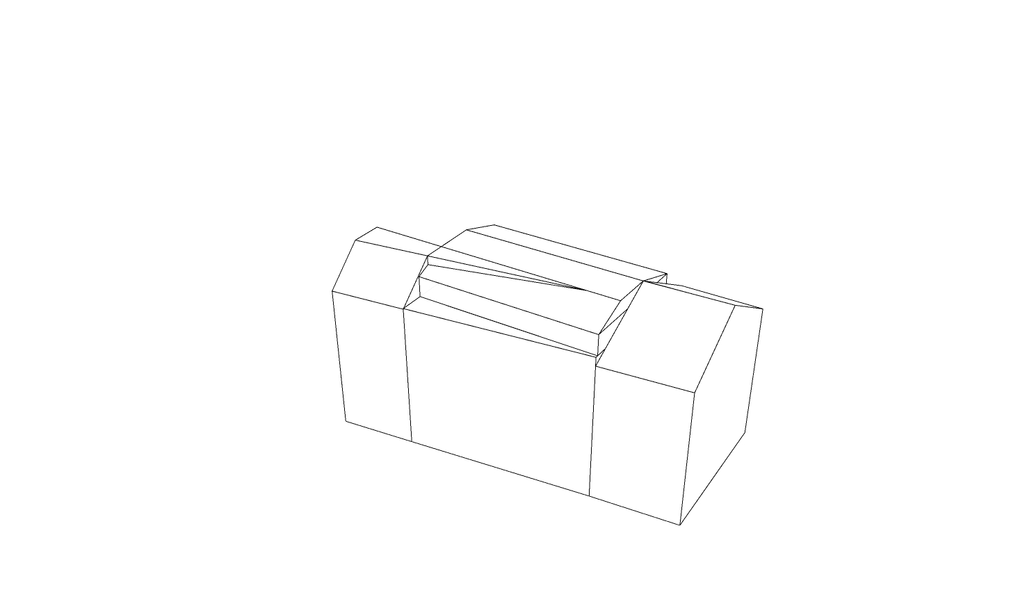 Es gelingt, auf dem vorhandenen Raster des Betonskelettbaus eine städtebaulich und konstruktiv intelligente Form zu kreieren, welche die nachbarlichen Dachfirste und -neigungen übernimmt.