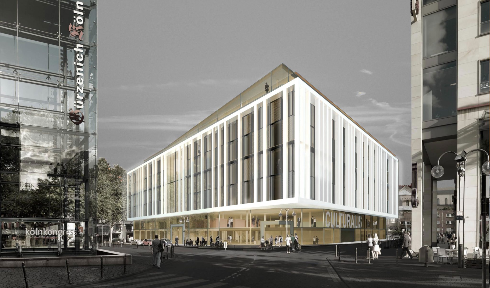 Diese tritt in der inneren Gebäudestruktur wieder in Form einer verglasten Magistrale in Erscheinung und richtet den Blick auf einige der wichtigsten Kölner Denkmäler.